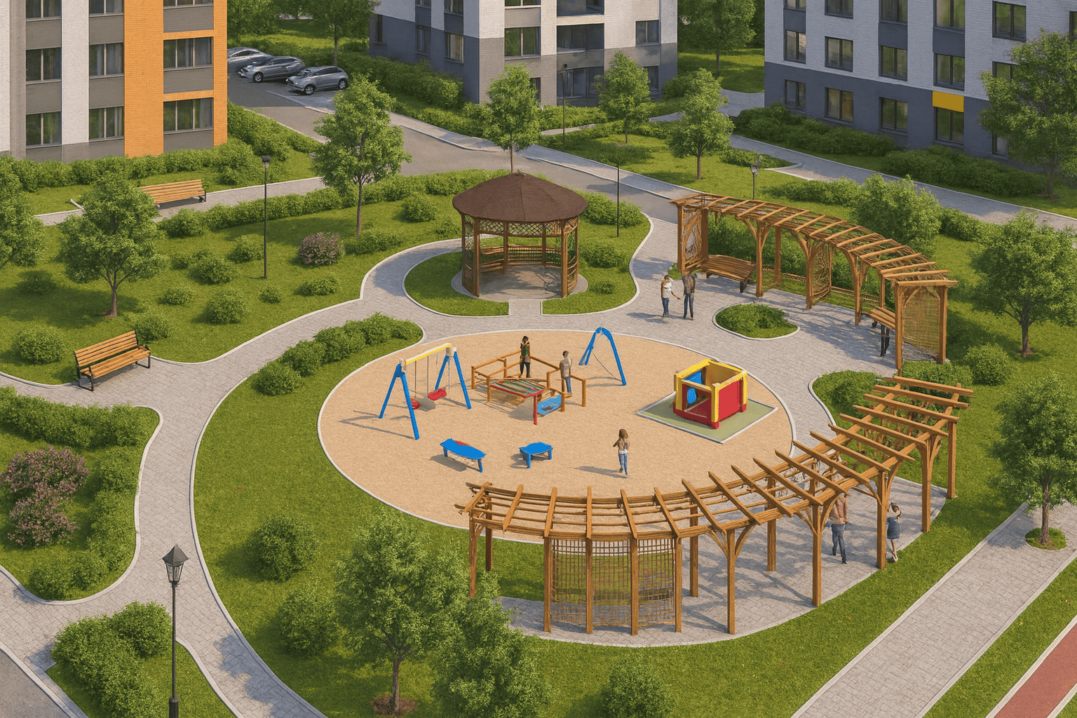 Благоустройство дворовых территорий — это комплекс мероприятий, направленных на создание функционального, безопасного и привлекательного пространства для жителей. Дворы современных жилых комплексов выполняют сразу несколько функций: это место для отдыха, детских игр, занятий спортом и общения соседей. Поэтому важно, чтобы каждый элемент инфраструктуры был продуман, долговечен и гармонично вписывался в архитектурную концепцию дома.